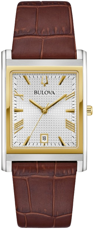 Đồng hồ nam hình chữ nhật Sutton là hình mẫu mới cho sự thanh lịch cổ điển. Được chế tác với thiết kế hình học bóng bẩy với lớp hoàn thiện được chải và đánh bóng, vỏ thép không gỉ tông màu bạc mỏng được đính tinh thể sapphire và có các góc và đường nét được kết hợp chu đáo để tạo nên sự hiện diện ấn tượng trên cổ tay, với vành bezel tông màu vàng nổi bật mang lại sự tương phản tinh tế. Họa tiết đinh tán trên mặt số màu trắng bạc có kết cấu mang đến vẻ ngoài mang tính biểu tượng, trong khi các vạch số La Mã và cọc số màu vàng xen kẽ truyền tải chất lượng vượt thời gian. Mặt số được trang bị thêm màn hình hiển thị ngày ở vị trí 6 giờ và kim màu vàng đánh bóng. Đồng hồ được kết hợp cẩn thận với dây đeo bằng da màu nâu có khóa cài. Nâng tầm phong cách của bạn với đồng hồ Bulova Sutton hình chữ nhật mỏng và phong cách. Bộ máy 9U13 Quartz Bộ máy chạy bằng pin. Tinh thể thạch anh điều chỉnh thời gian đạt độ chính xác đến 15 giây một tháng. Mặt số Số La Mã tông bạc tông vàng. Vỏ 29 Thép không gỉ hai tông màu. Càng 22. Dây đeo bằng da Khóa dây đeo 3 mảnh. Pha lê Tinh thể Sapphire chống phản chiếu Chống va đập và vỡ – lớp phủ chống phản chiếu làm lệch hướng ánh sáng. Trọng lượng (g) 70. Chức năng bổ sung 3 kim, Lịch, Chuyển động mỏng