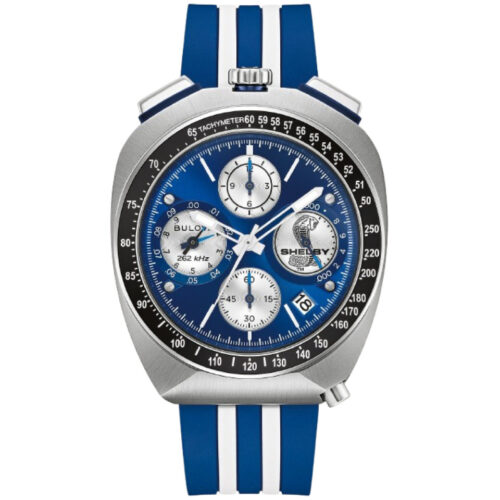Trải nghiệm cảm giác mạnh mẽ của tốc độ ngay trên cổ tay bạn. Là một phần của sự hợp tác mới cho Kỷ niệm 150 năm thành lập Bulova, Bulova Racing Chronograph phiên bản giới hạn mới kết hợp phong cách đua xe tiên phong của nhà tùy chỉnh xe cơ bắp huyền thoại Carroll Shelby với công nghệ chế tác đồng hồ tiên tiến của Bulova. Phối màu xanh và trắng đặc trưng của Shelby được thể hiện đầy đủ, làm nổi bật dây đeo cao su, làm nổi bật mặt số và nâng tầm vỏ thép không gỉ tông bạc 43mm. Lấy cảm hứng từ sức mạnh khủng khiếp của chiếc Shelby Ford Mustang GT500 năm 1967, vỏ hình đầu bò góc cạnh mang đến sự hiện diện ấn tượng trên cổ tay, gợi nhớ đến những đường nét khí động học của chiếc xe biểu tượng đó và bao gồm vòng đo tốc độ màu đen, tinh thể sapphire, núm điều chỉnh và nút bấm 12 giờ, và vỏ giữa có rãnh gợi nhớ đến những đường sọc đua của chiếc xe. Với logo Shelby Cobra nằm gọn gàng ở vị trí 3 giờ, mặt số sống động với chức năng bấm giờ 8 kim, bao gồm khả năng bấm giờ chính xác đến 1/1000 giây, được trang bị bộ máy Quartz Precisionist độc quyền của Bulova, hoạt động ở tần số 262kHz cho độ chính xác tuyệt đối và kim bấm giờ quét ngang. Với mặt sau được đánh số riêng và đánh bóng, khắc chữ ký của Shelby, được đựng trong hộp phiên bản giới hạn kèm theo mô hình đúc khuôn 1:24 của GT500, chiếc Racing Chronograph mới mang sức mạnh từ những sáng tạo của Shelby đến cổ tay bạn, mang đến phong cách độc đáo. Giới hạn 7.500 chiếc trên toàn thế giới. Công nghệ NN10. HPQ Precisionist Một bộ máy có tinh thể thạch anh 3 chấu với tần số 262 kHz, cao hơn 8 lần so với thạch anh tiêu chuẩn, dẫn đến độ chính xác giây một năm. Chiều rộng vỏ (mm) 43. Chiều rộng càng (mm) 22. Trọng lượng (g) 127. Mặt số Xanh dạ quang; Điểm nhấn màu trắng, Kim dạ quang. Loại dây đeo Cao su HNBR. Chất liệu vỏ Thép không gỉ hai tông màu. Vỏ sau vít Viền nhôm. Khóa Khóa gấp có nút bấm. Pha lê Tinh thể Sapphire chống phản quang Chống va đập và vỡ – lớp phủ chống phản quang làm lệch hướng ánh sáng. Chống nước 50M. Chức năng bổ sung Đồng hồ bấm giờ 1/1000 giây. Lịch HPQ Precisionist