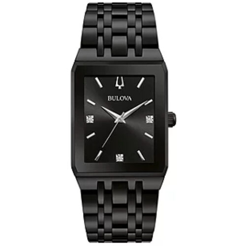 Khả năng chống nước 30M (3 ATM). Thương hiệu Bulova. Loại Đồng hồ đeo tay Màu dây đeo: Đen. Chất liệu dây đeo: Thép không gỉ. Màu mặt số: Đen. Phong cách: Trang trọng/Trang trọng. Tính năng: Thép không gỉ. Kích thước vỏ: 30 mm. Chất liệu vỏ: Thép không gỉ.