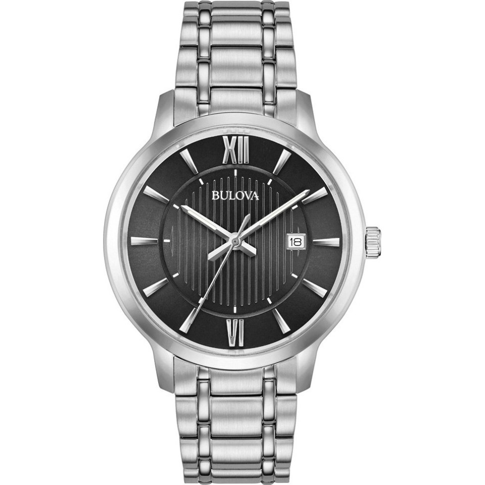 Dòng Bulova Classic có vỏ bằng thép không gỉ 40mm, viền cố định, mặt số màu xanh và mặt kính khoáng chống trầy xước.