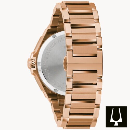 Với các yếu tố thiết kế kiến trúc nam tính đặc biệt cùng vỏ và dây đeo bằng thép không gỉ tông vàng hồng, chiếc đồng hồ nam Precisionist X Diamond mới này tạo ấn tượng táo bạo ngay từ đầu. Mặt đồng hồ 3 kim màu đen có cửa sổ lịch triển lãm, đính 8 viên kim cương đính thủ công trang nhã và được hoàn thiện bằng tinh thể sapphire cong. Vòng đeo tay có một chốt triển khai với nút đẩy để dễ dàng tháo ra. Chiếc đồng hồ sang trọng này có khả năng chống nước ở độ sâu lên đến 100 mét và được vận hành bởi bộ chuyển động lịch 3 tay 262kHz hiệu suất cao độc quyền của Bulova. Đưa độ chính xác của bạn lên một tầm cao mới với chiếc đồng hồ sáng tạo và phong cách này, có thiết kế và công nghệ kết hợp.