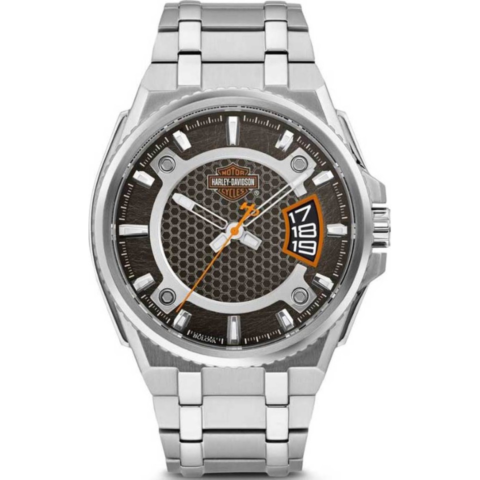 Mặt số ba kim màu sâm panh với tính năng ngày và tinh thể khoáng phẳng