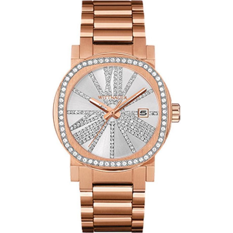 Vỏ, dây đeo bằng thép không gỉ tông vàng và mặt số xà cừ trắng bóng được tô điểm bằng 174 viên pha lê Swarovski® rực rỡ. Có bộ chuyển động thạch anh quét phụ ba kim, tinh thể khoáng phẳng và khả năng chống nước ở độ sâu 30 mét.