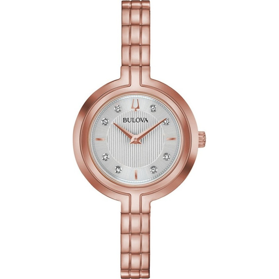 Mỏng, kiểu dáng đẹp và phong cách, chiếc đồng hồ có điểm nhấn kim cương dành cho nữ của Bulova này mang đến nét sang trọng cho mọi diện mạo. Vòng đeo tay bằng thép không gỉ hai tông màu với các mối nối có rãnh và tinh thể khoáng phẳng của thợ kim hoàn, khả năng chống nước ở độ sâu 30 mét.