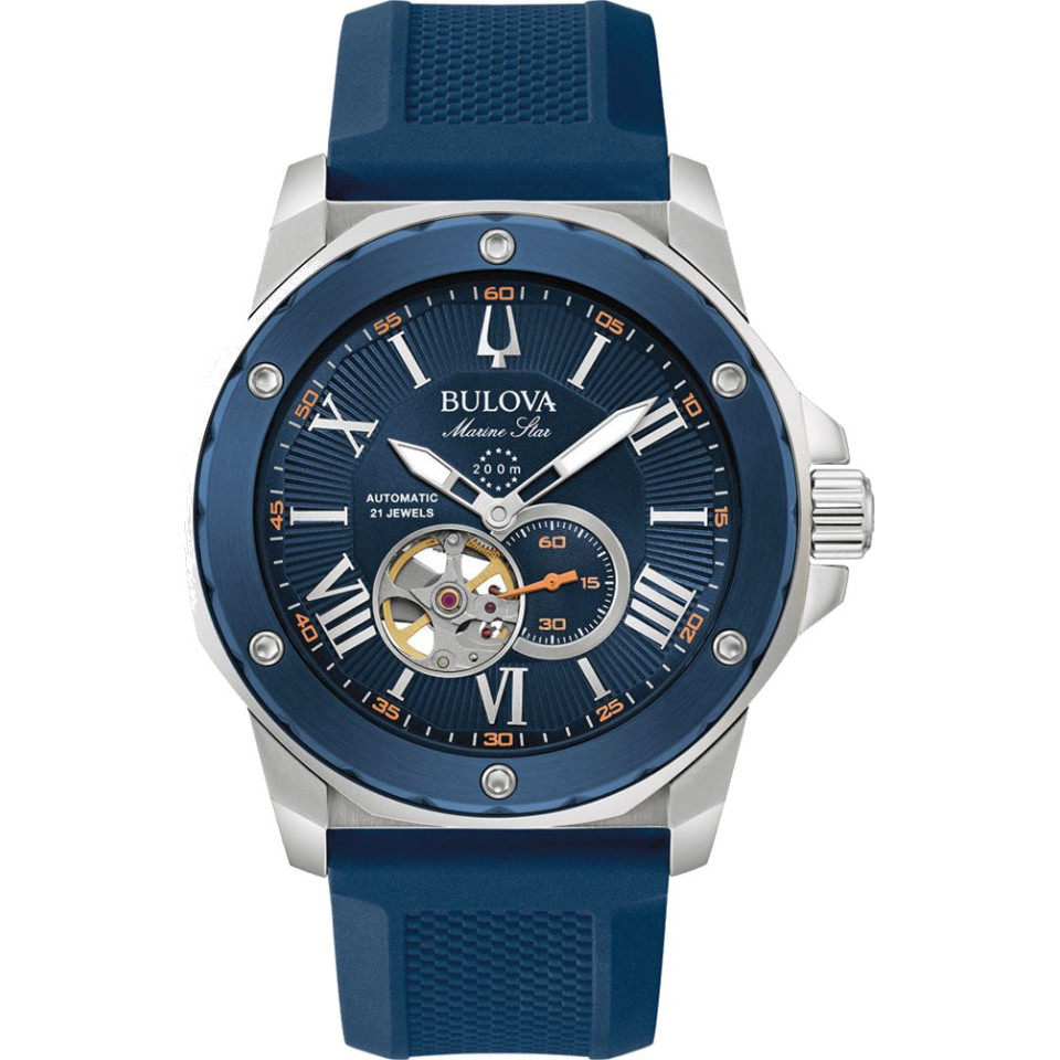 Hãy chào đón một bạn mới táo bạo với chiếc đồng hồ Bulova Marine Star tự động dành cho nữ thể thao. Vỏ thép không gỉ tông màu bạc có sự pha trộn hấp dẫn của các lớp hoàn thiện để tạo nên sự hiện diện năng động trên cổ tay, trong khi tinh thể sapphire và núm điều chỉnh được bảo vệ mang đến độ tin cậy hiện đại được tăng cường thêm khả năng chống nước ở độ sâu 100m. Mặt số xà cừ sáng bóng có điểm nhấn tông màu bạc, với các vạch chỉ giờ số La Mã và kim ấn tượng với lớp phủ phát quang để đảm bảo dễ đọc trong mọi tình huống. Ở nửa dưới của mặt số, một vòng tông màu bạc bao quanh một lỗ hở cho phép nhìn thoáng qua trái tim đang đập của bộ máy tự động cao cấp mỏng, có 24 chân kính và dự trữ năng lượng trong 42 giờ. Hoàn thiện chiếc đồng hồ là dây đeo silicon tháo lắp nhanh màu xanh lam mang đến sự thoải mái và an toàn đặc biệt. Với sự sang trọng thanh lịch và linh hồn cơ học, chiếc đồng hồ Bulova dành cho nữ này chắc chắn sẽ đồng hành cùng bạn suốt cả ngày theo phong cách vượt thời gian. Màu sắc xà cừ trên mặt số có thể thay đổi do sự thay đổi tự nhiên của vật liệu. Phản xạ ánh sáng tạo ra hiệu ứng óng ánh, khiến màu sắc thay đổi và biến đổi, khiến mỗi mặt số trở nên độc đáo về màu sắc và tông màu. Công nghệ chuyển động 9029 Tự động Được cung cấp năng lượng bởi lò xo lên dây cót, chuyển động cơ học không bao giờ cần pin. Chuyển động cơ học tự động có trọng lượng dao động lên dây cót bằng chuyển động của cánh tay người đeo. Chiều rộng vỏ (mm) 35. Chiều rộng càng (mm) 18. Mặt số màu trắng. Điểm nhấn màu bạc Kim phát sáng; Khẩu độ mở, Nhịp tim; Số La Mã; Âm thoa. Dây đeo bằng silicon. Chất liệu vỏ. Tông màu bạc. Thép không gỉ. Khóa dây đeo bằng dây 3 mảnh. Pha lê Pha lê Sapphire chống phản chiếu. Chống va đập và vỡ – lớp phủ chống phản chiếu làm chệch hướng ánh sáng. Khả năng chống nước 100M. Tự động 2 kim. Chuyển động mỏng. Dự trữ năng lượng 42 giờ.