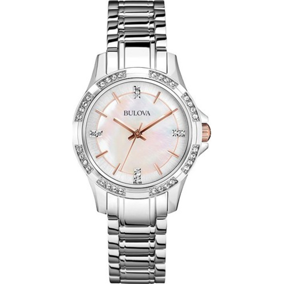 Đồng hồ Sutton hai tông màu nhỏ nhắn của Bulova thể hiện sự kết hợp khéo léo giữa thiết kế sang trọng và sự đơn giản hiện đại. Với điểm nhấn kim cương.